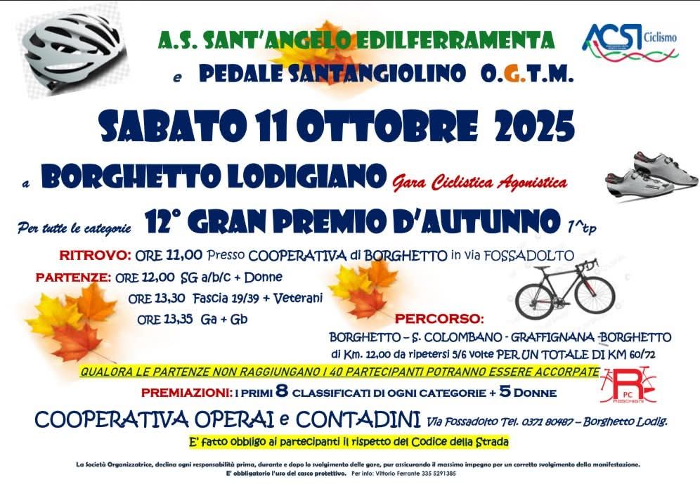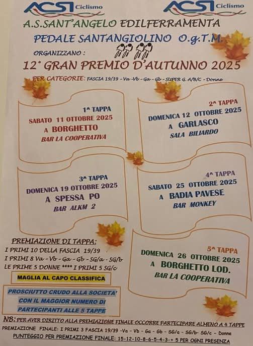 5️⃣a Tappa – domenica 25 ottobre – Borghetto Lodigiano (LO)