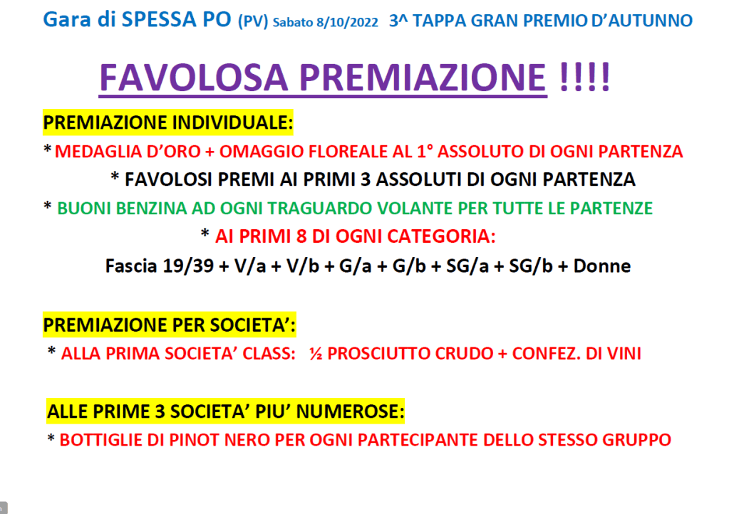 Spessa Po – 8 ottobre 2022 – Ordini d’arrivo e classifiche aggiornate Gran Premio d’Autunno