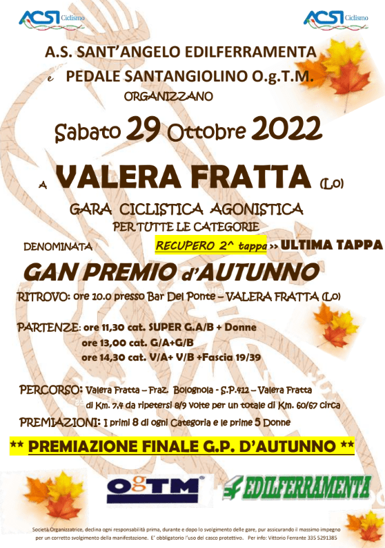 Volantini ultime tre tappe del G.P. d’Autunno 2022