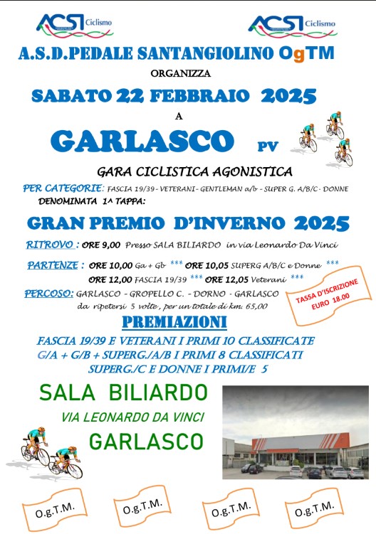 sabato 22 febbraio 2025 – 1a Tappa del Gran Premio d’inverno a Garlasco (PV)