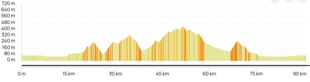Ed ecco la planimetria del percorso (91km e 1200mD+)