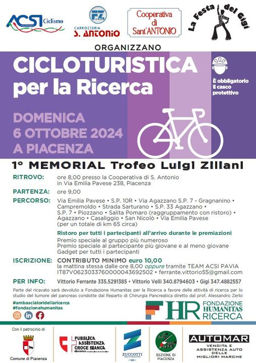 Domenica 6 Ottobre a Piacenza si pedala per promuovere la Ricerca della Fondazione Humanitas.