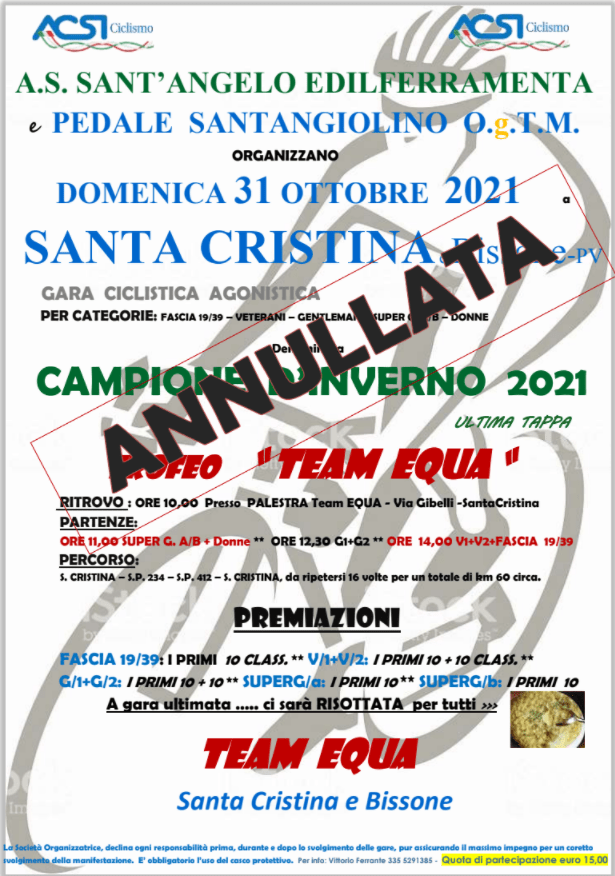 Annullata la gara del 31 Ottobre a Santa Cristina